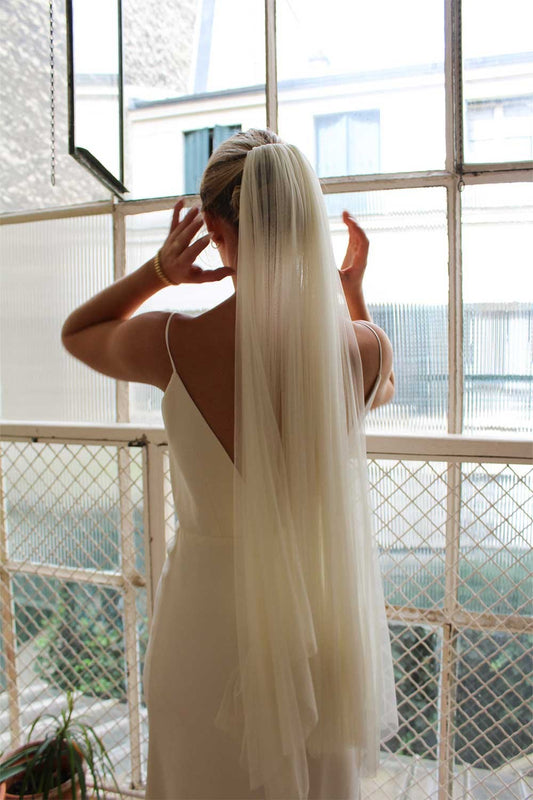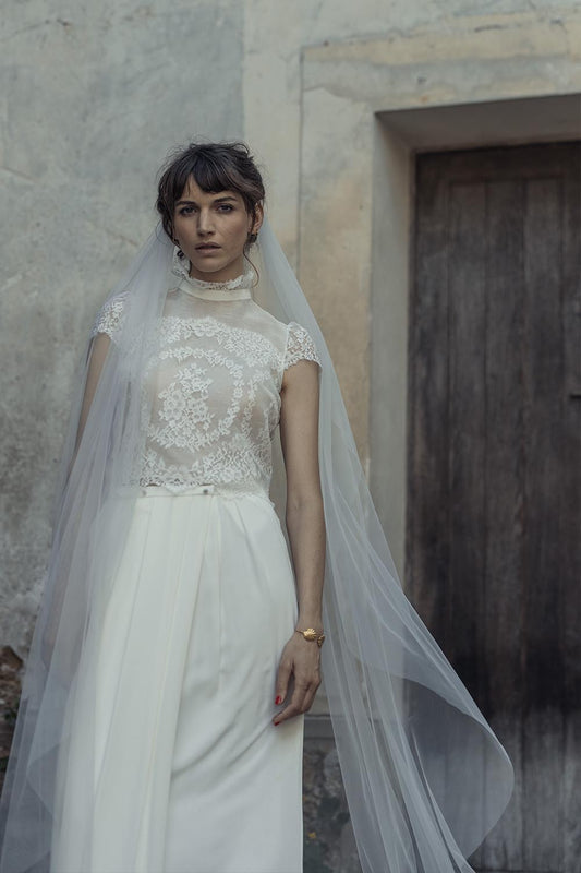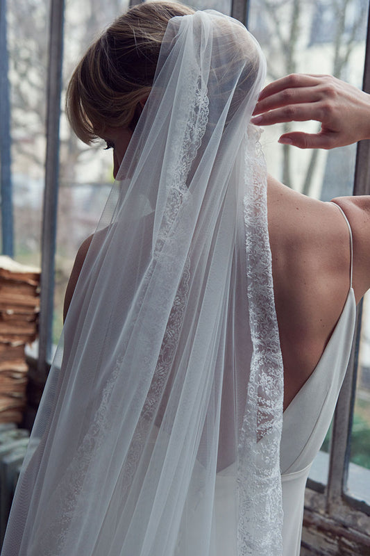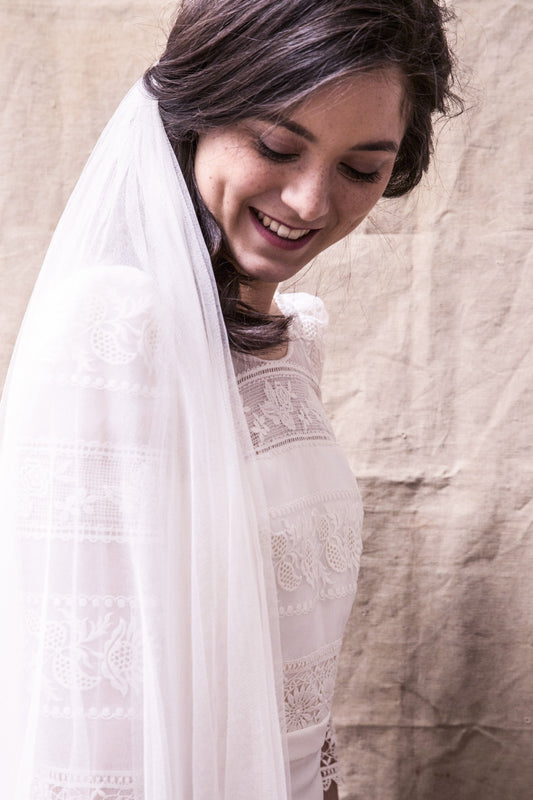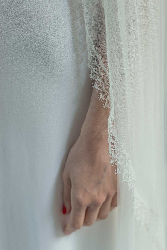 VOILE LONG BORDE DE DENTELLE SANS RETOUR