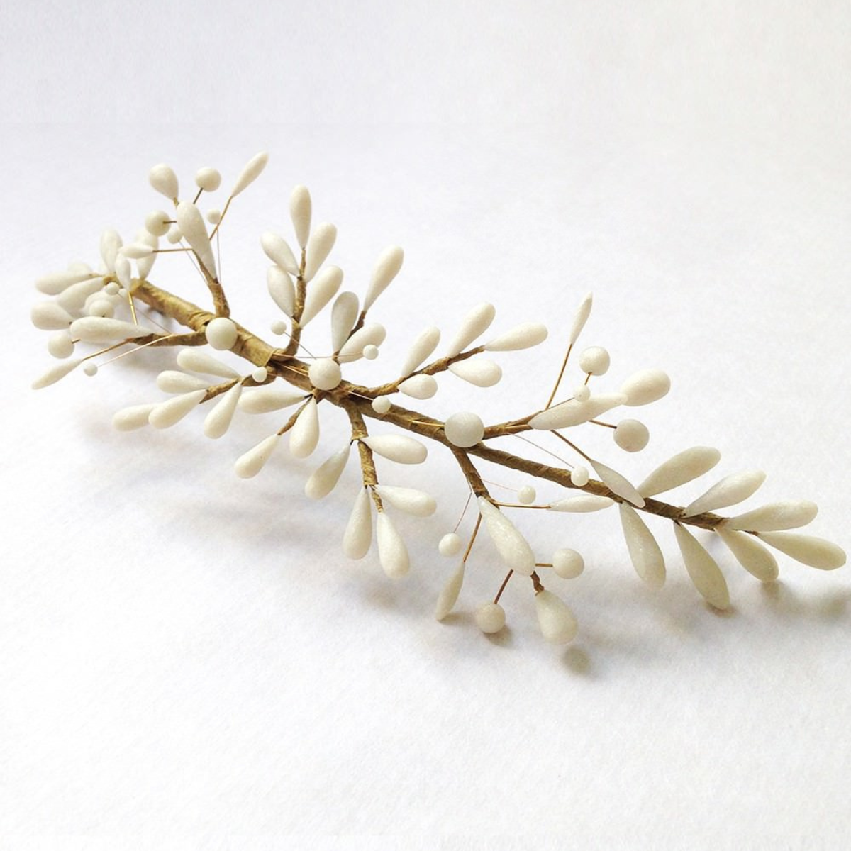 Inspired by old-fashioned wax wreaths, the Hortense comb is composed of delicate stems crafted one by one, then assembled by hand.