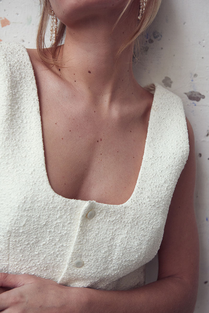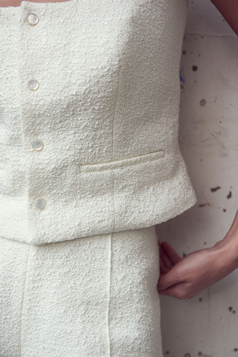 Taken from the men's wardrobe, dare to wear a tweed vest which gives the silhouette an offbeat and trendy style.