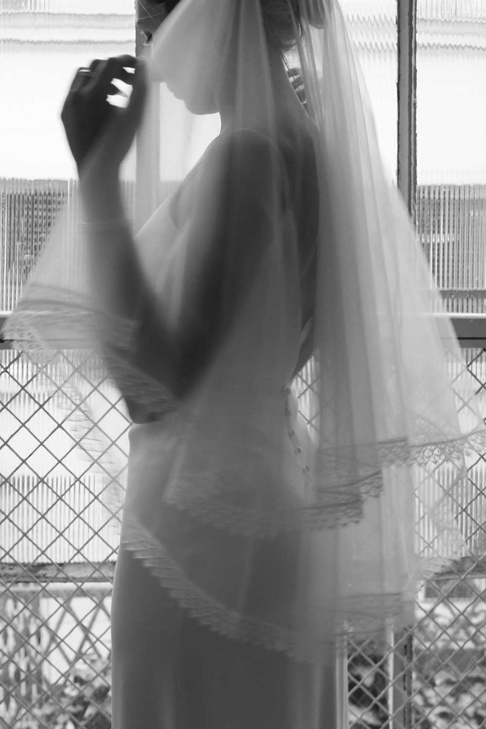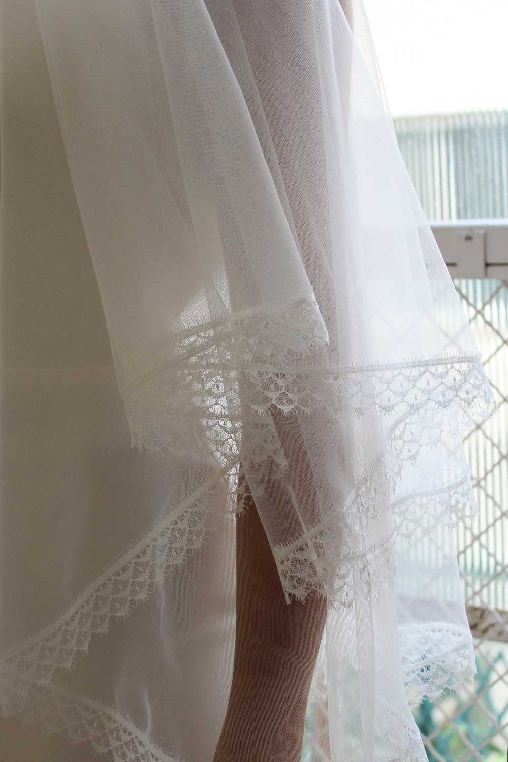 The short veil... the perfect way to combine the elegance of a traditional accessory with modernity! Hand-crafted in France, in Laure de Sagazan's Paris atelier, this ivory tulle veil is edged with delicate Calais lace. Choose the lace pattern that best suits your look!