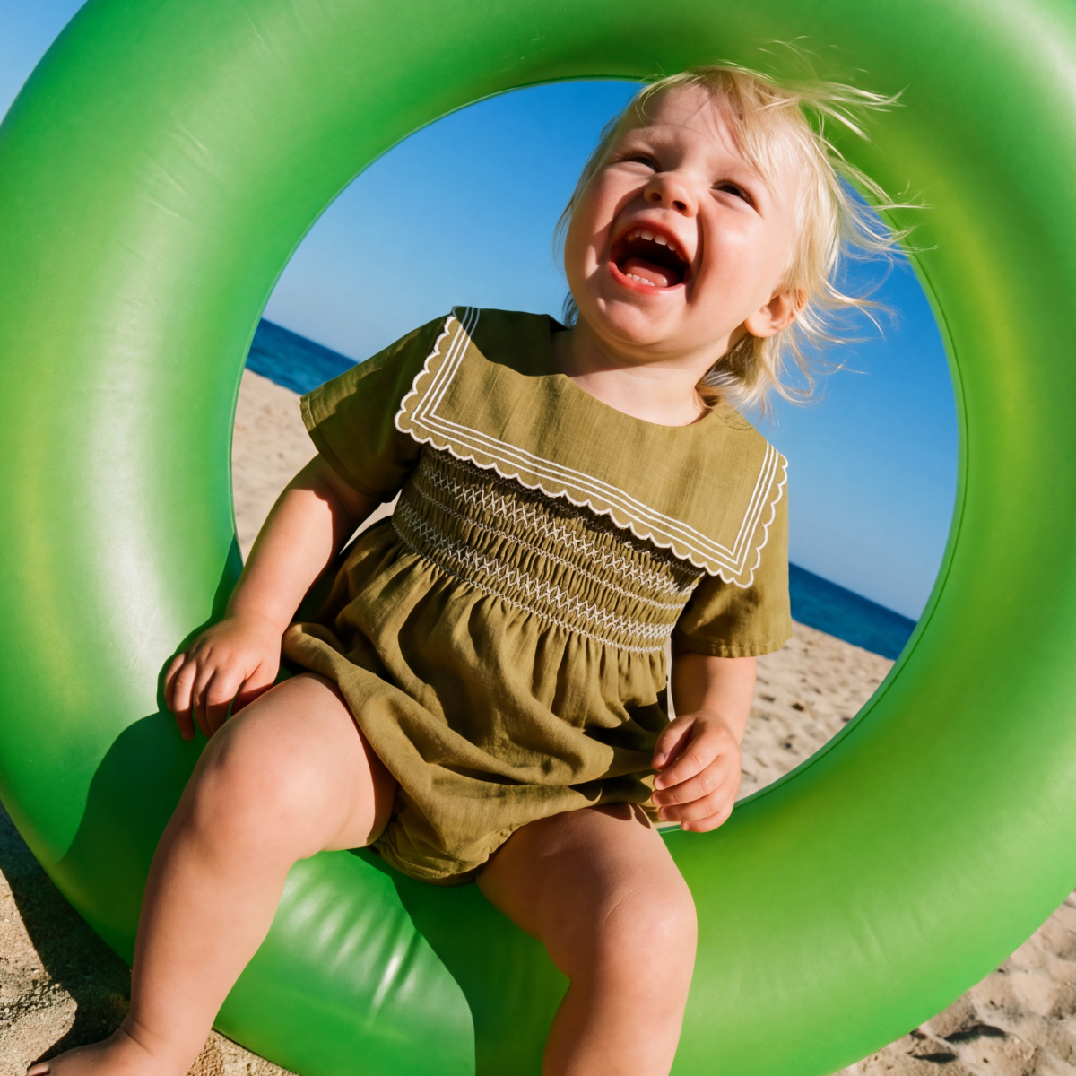 Passion folle pour notre barboteuse Cigogne avec son empiècement smocké devant et dos. Broderies ivoire sur le devant. Collerette volantée. Manches courtes avec détails smockés coloris ton sur ton. Patte de boutonnage au dos avec petits boutons. Boutons pression au niveau de l’entrejambe, cuisses élastiquées. Elle sera parfaite associée au béguin Ambre et aux petits chaussons Agave, pour les petits et grands moments.