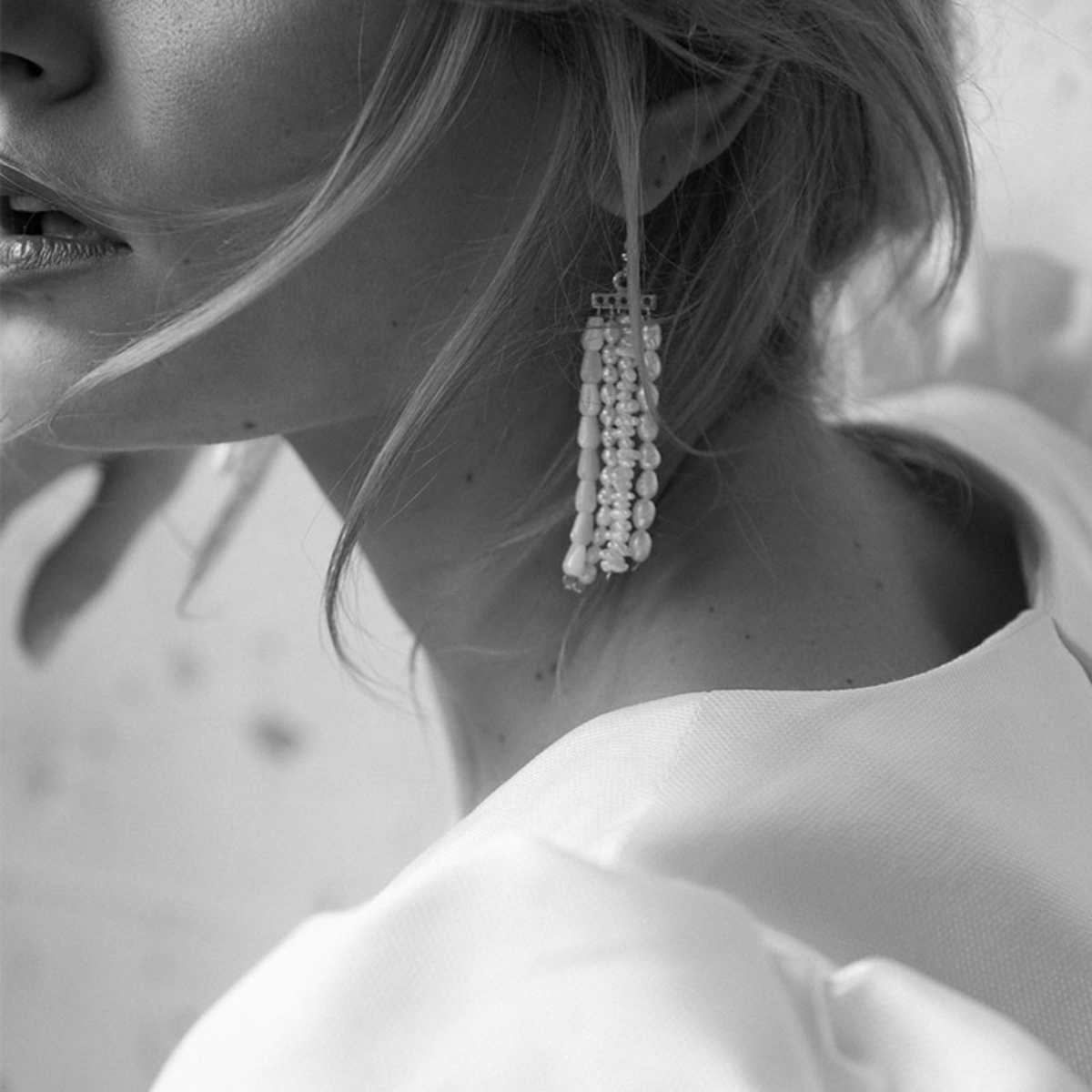 Pendientes alargados con tres filas de perlas de agua dulce de diferente textura y forma. Dimensiones del pendiente: