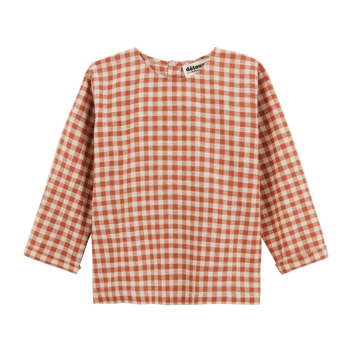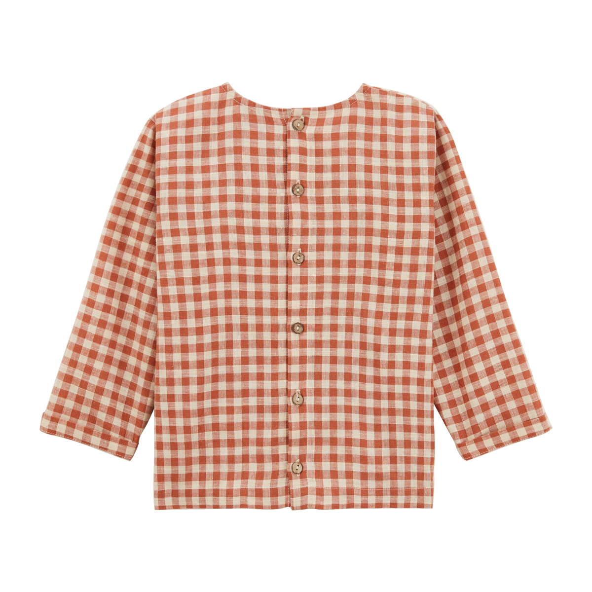 Chemise vichy mixte aux manches longues. Patte de boutonnage au dos avec petits boutons.