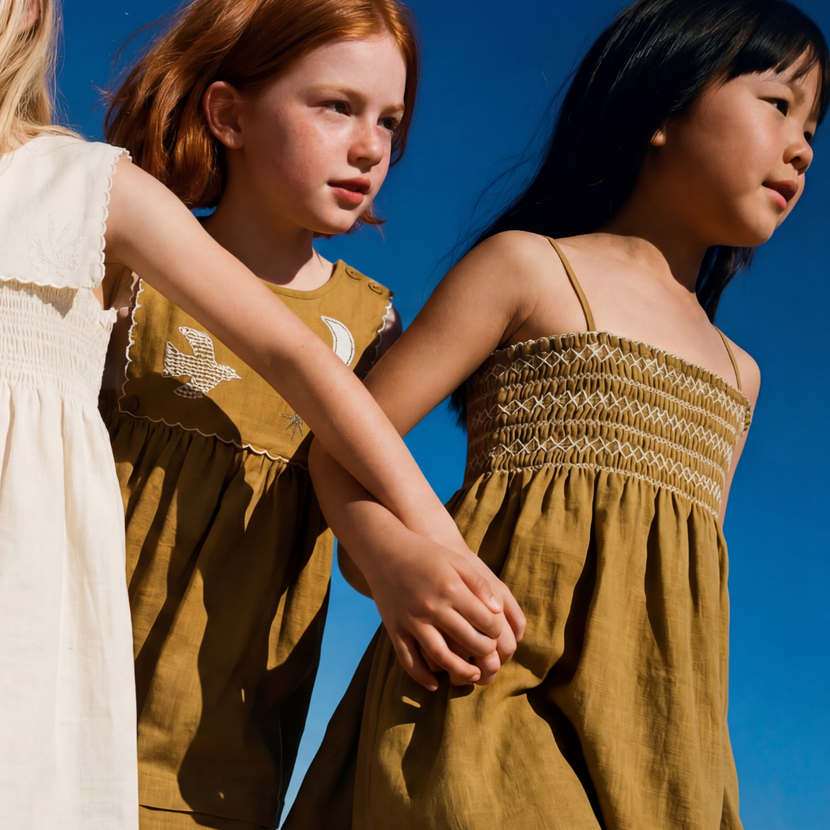 Beauté folle : ne manquez pas Caille, notre robe smockée olive à tomber! Pratique et élégante pour une journée ensoleillée.