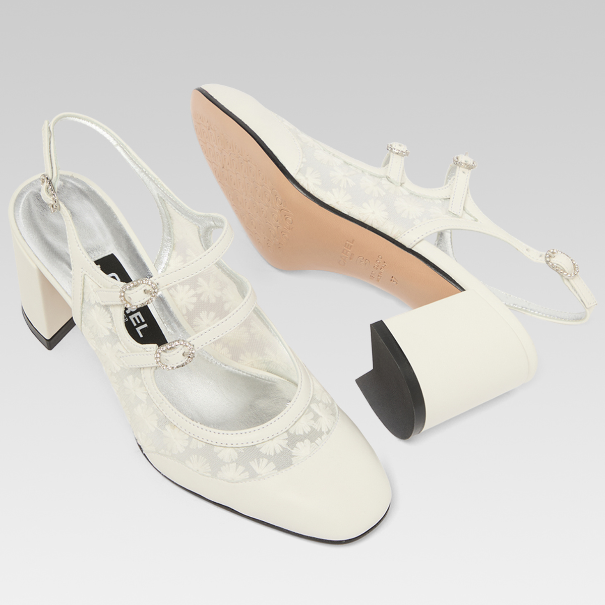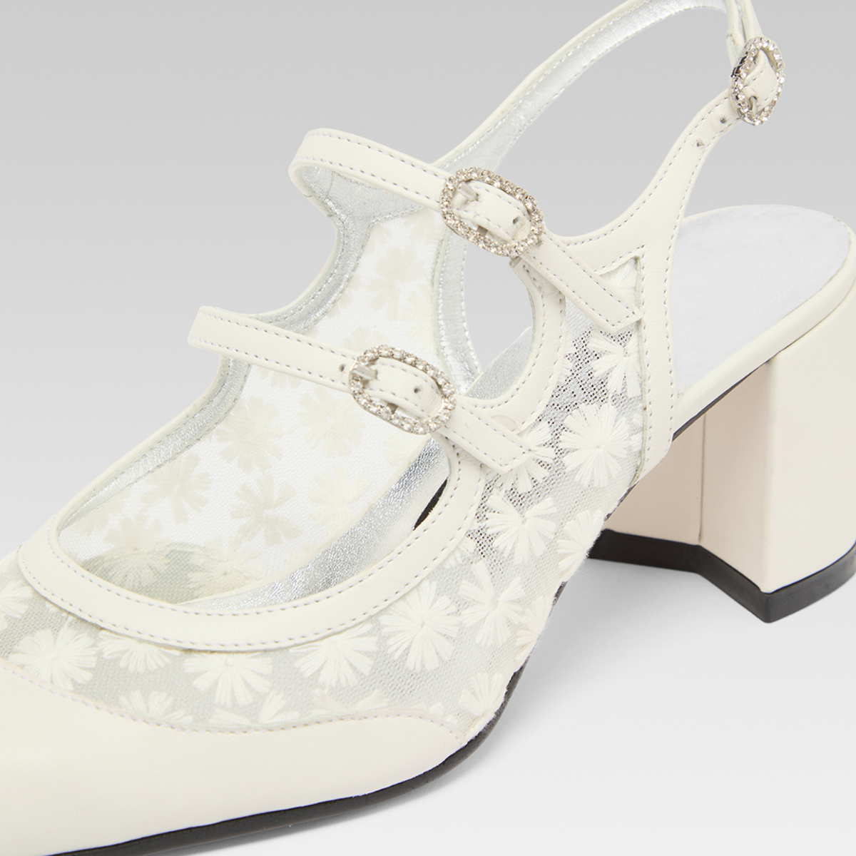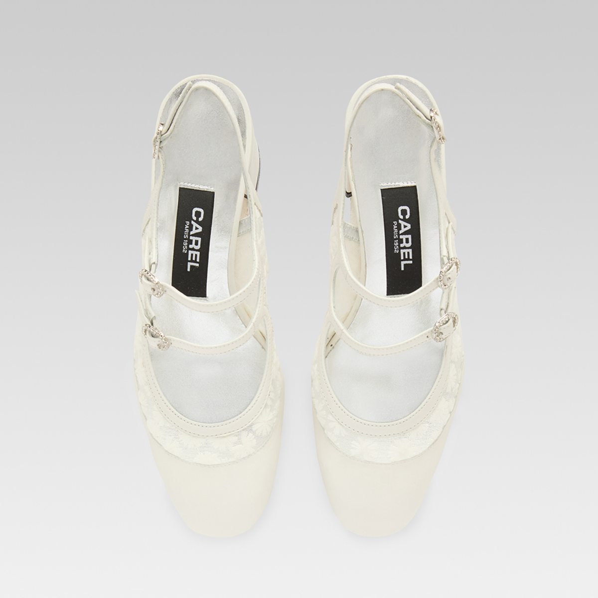 Babies slingback cuir ivoire et dentelle à fleurs upcyclée