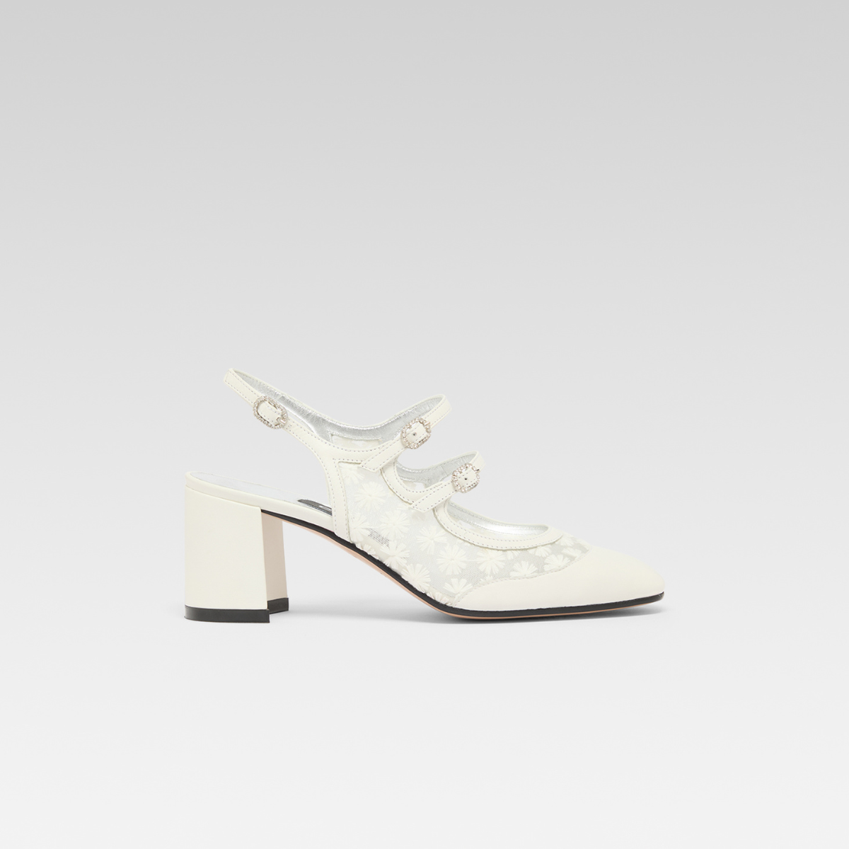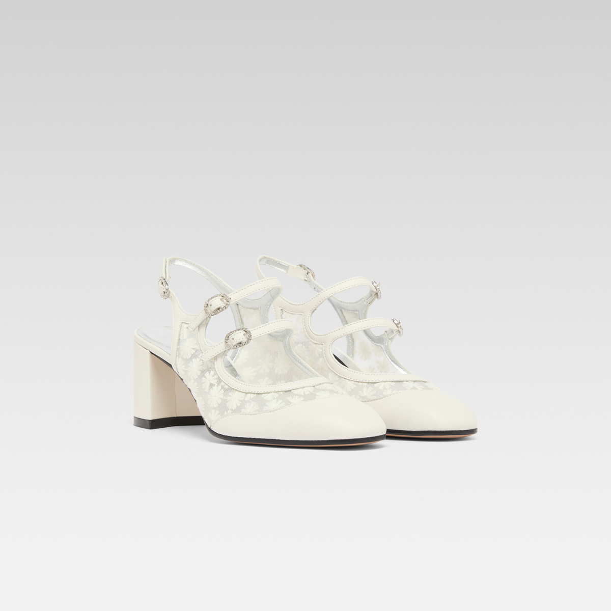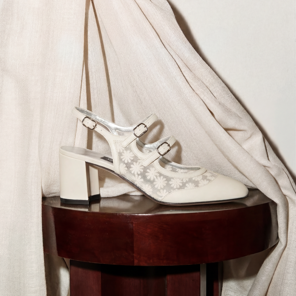 Babies slingback cuir ivoire et dentelle à fleurs upcyclée