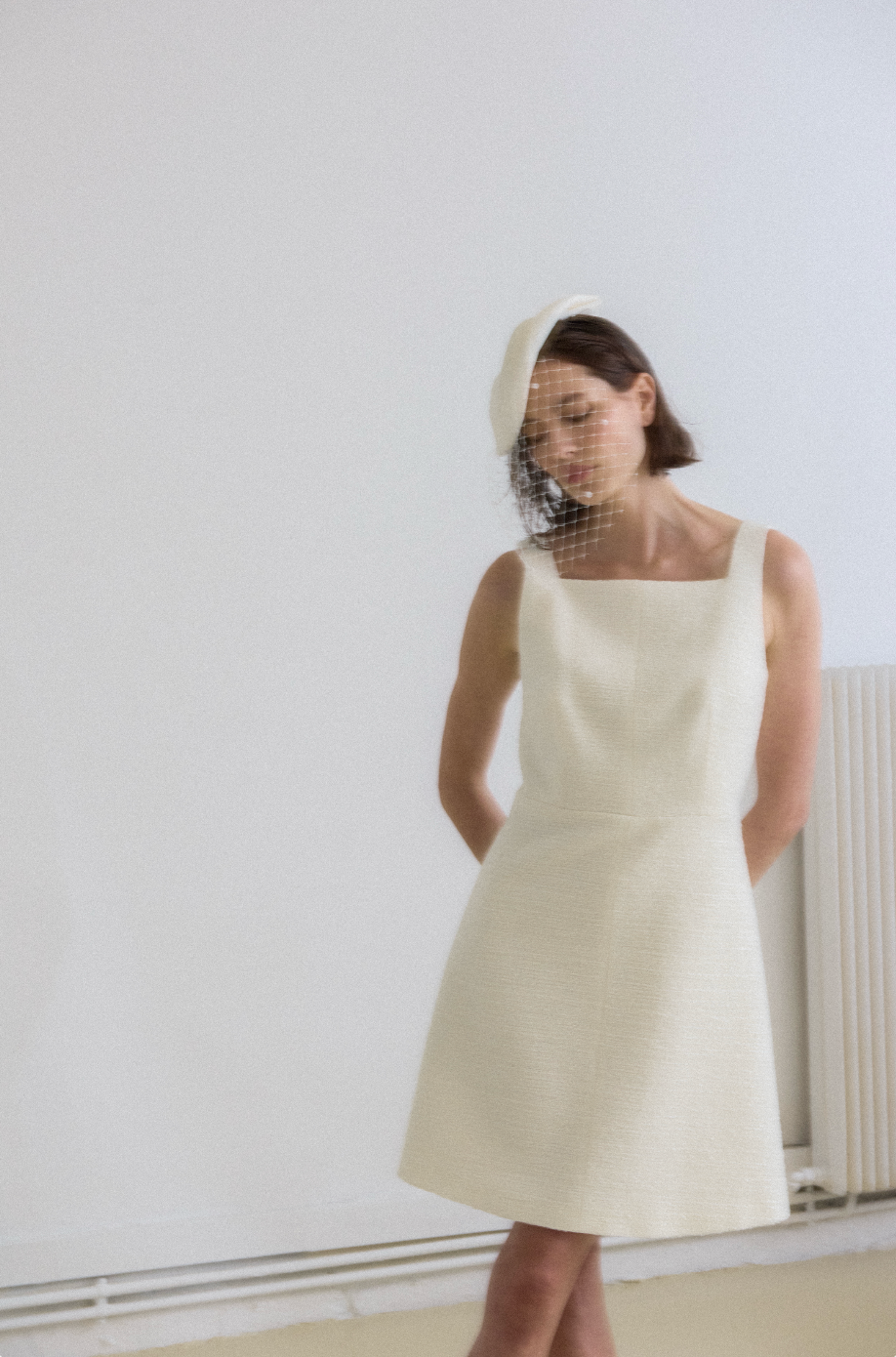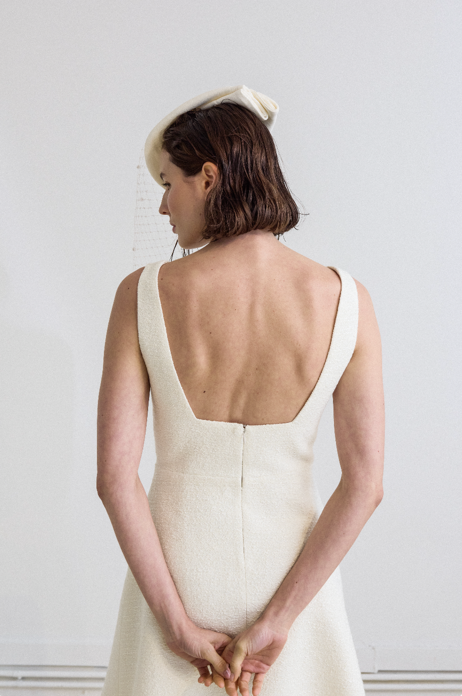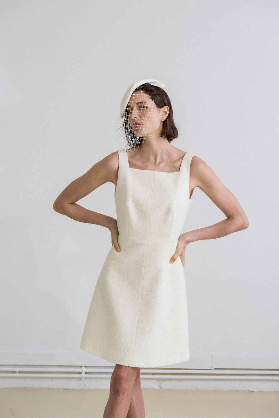 Intemporelle et féminine, la robe Portman conjugue élégance graphique et esprit vintage. En tweed, elle s’illustre par un double décolleté carré, moderne et structuré, à l’avant comme au dos.