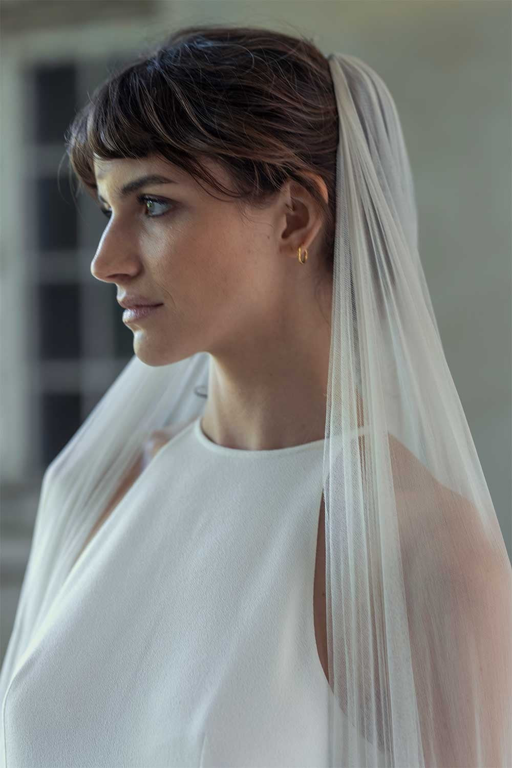 - Le voile se fixe aisément sur la coiffure au moyen d'un peigne